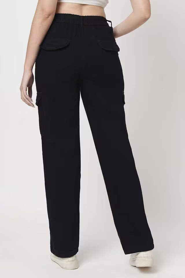 Solid Cotton Blend Slim Fit Trousers